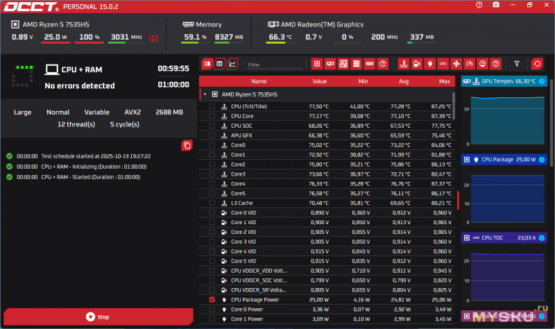 Частота кадров в игре GTA V у меня была в районе 30 к/с. При появлении большего количества машин и NPC она падала до 26. Играть можно и, главное, делать это дольше из-за энергоэффективного процессора в своем классе AMD Ryzen 5 7535HS.