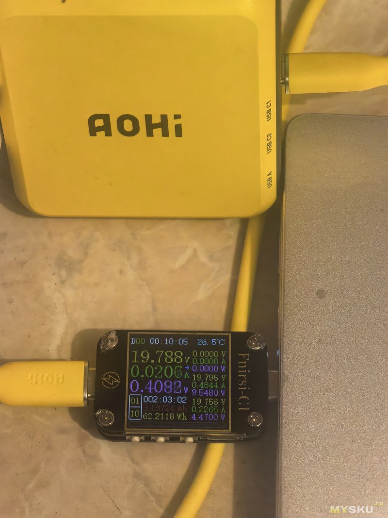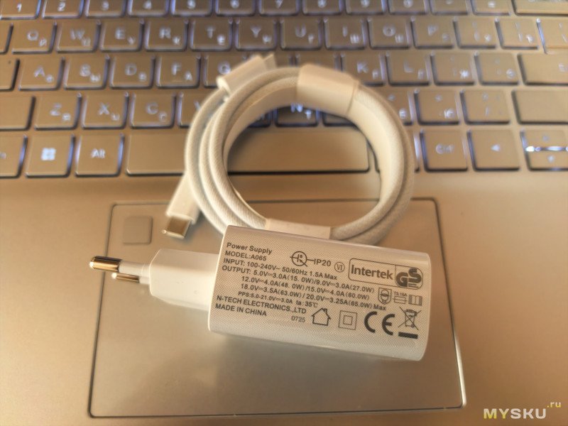 Зарядное устройство на 65W. Как показано в разделе "Заряд и разряд", процесс не достигает такой мощности.