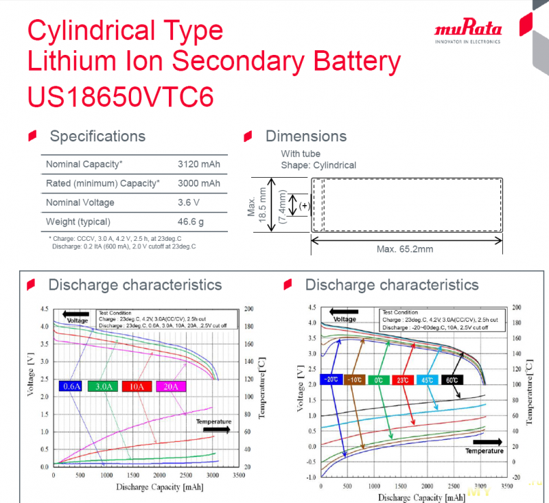 Вот, как пример, кусочек даташита на акки Murata: