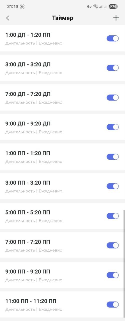 3. Таймер работает через китайский сервер. При отсутствии интернета — не работает. На панели тоже есть кнопка «Таймер», но она позволяет настроить только один период — либо включить через нужное время, либо отключить.