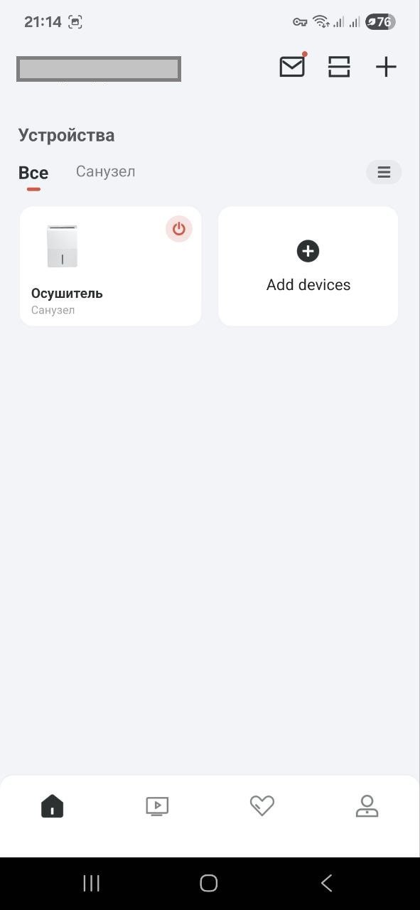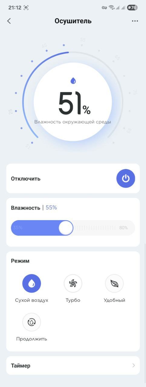 В результате осушитель привязывается к сети вайфай и становится виден в приложении, после чего в его настройках в самом низу тычем в пункт «Таймер» и через плюсик справа вверху добавляем желаемые периоды работы: