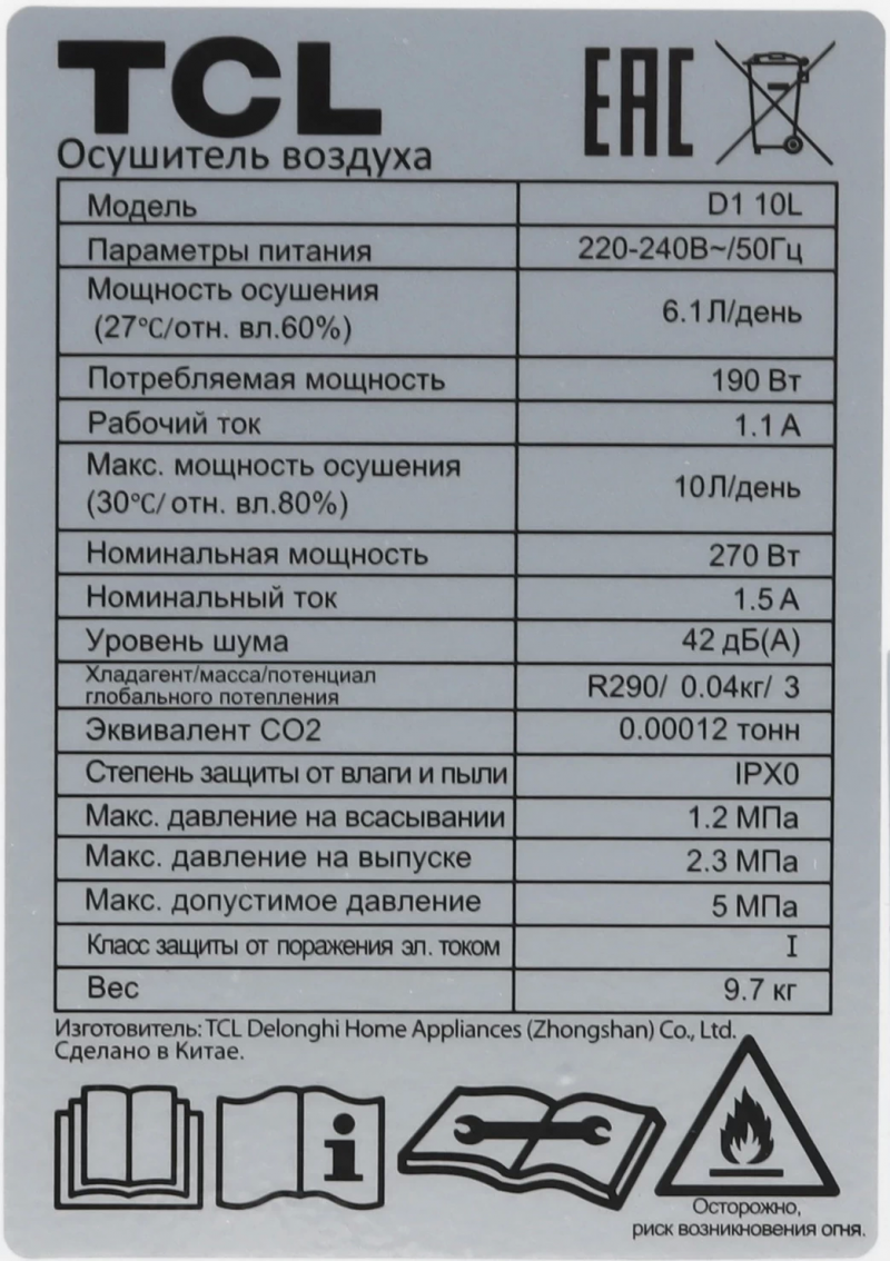 Осушитель воздуха TCL D1 10L белый, победа над влажностью в ванной и запотеванием зеркал!