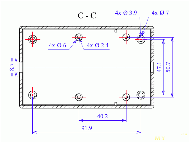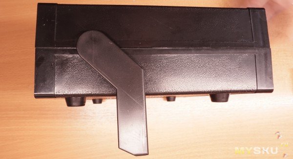 Толщина пластика: передние стенки 2.2 мм, боковые стенки ~3мм, дно и крышка 2.5 мм. Литьё деталей не идеально,ну а что вы хотели за 300 рублей то? : между половинками корпуса в середине есть небольшая щель чуть меньше миллиметра. Но это, если честно мелочи. Зато, предусмотрены небольшие пазы и выступы на гранях, для фиксации верхней и нижней половин, чтобы не «разъезжались».