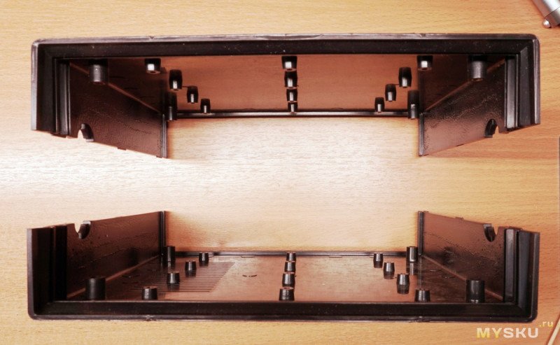 Толщина пластика: передние стенки 2.2 мм, боковые стенки ~3мм, дно и крышка 2.5 мм. Литьё деталей не идеально,