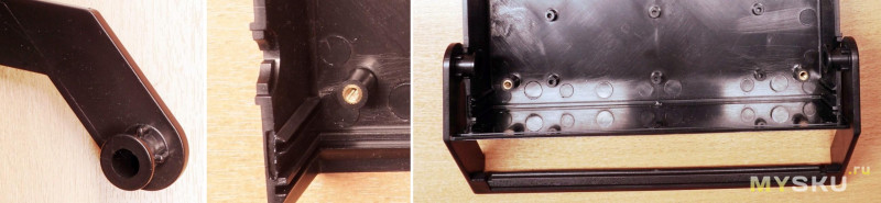 Ручка просто вставляется в предусмотренные для неё в деталях верха и низа отверстия. В креплениях самой ручки предусмотрены четыре выступа для зацепления с соответствующими пазами в корпусе.