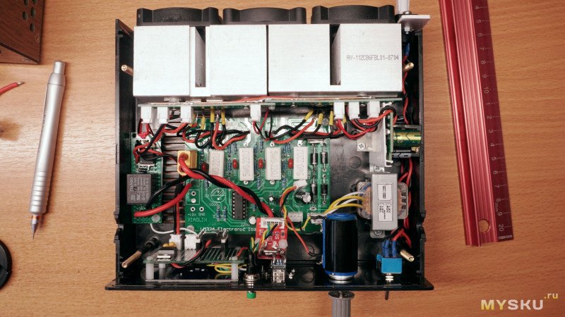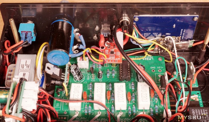 В результате, всё собралось и заработало, но мне такая внутренняя компоновка решительно не понравилась. Учитывая моё желание в дальнейшем постепенно расширять функционал этой нагрузки и понимая, что в такой паутине проводов делать что-либо будет затруднительно, принял трудное решение и распаял всё для переделки.