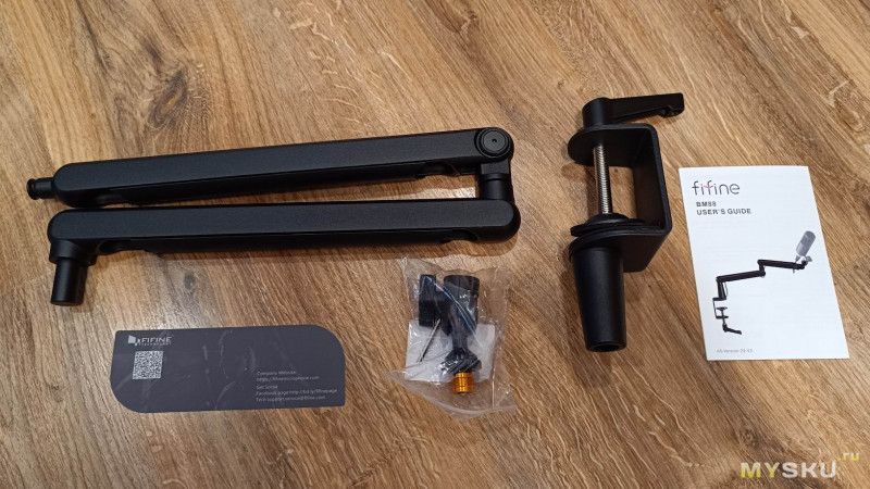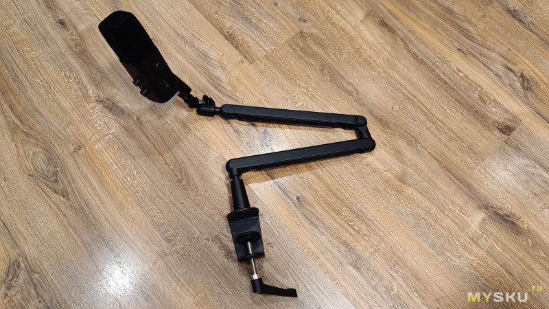 Чтобы собрать всё воедино, много времени не требуется. Буквально пару минут и пантограф вместе с микрофоном готов к установке на стол.