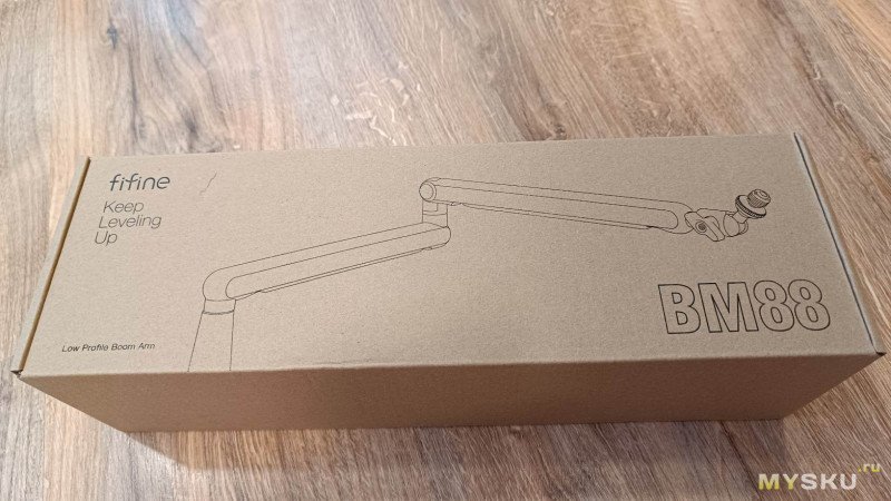 Микрофонная стойка Fifine BM88 поставляется в обычной коричневой картонной коробке, внутри которой все компоненты аккуратно разложены ещё по двум коробкам и надёжно защищены от тягот транспортировки.