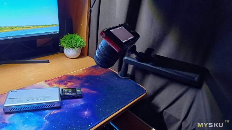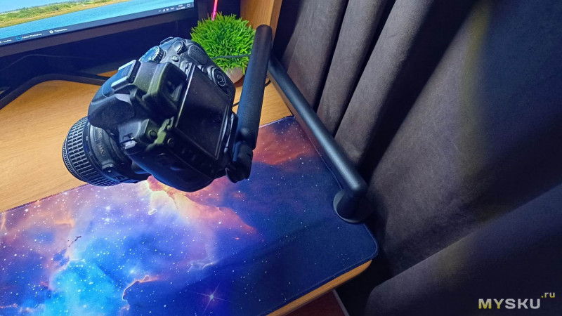 Причём установить на пантограф Fifine BM88 можно не только мыльницу или системную камеру, но и благодаря мощной конструкции с заявленной нагрузкой до 1,5 кг вполне серьёзный зеркальный фотоаппарат.