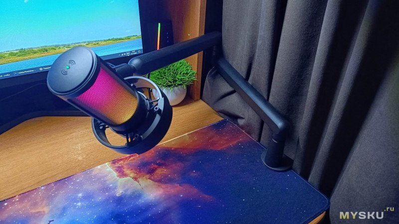 Микрофонная стойка, она же пантограф, пригодится тем, кому требуется оперативное перемещение микрофона из рабочей зоны в сторону, чтобы освободить пространство перед собой для каких-то других дел. Она подойдёт ведущим различных средств информационного вещания: от радио, до стримов и подкастов. Также найдёт она применение и у геймеров, которым чем-то не подходит гарнитура. Такой низкопрофильный пантограф способен обеспечить наличие свободного пространства перед монитором и при этом не перекрывать обзор.