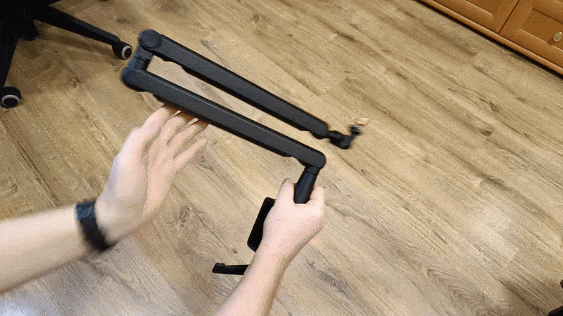 Главная достоинство данного пантографа заключается в том, что он не поднимается высоко над столом, а остаётся на уровне столешницы, не перекрывая обзор монитора и не загораживая собой или микрофоном лицо пользователя во время видеозвонков или стримов.