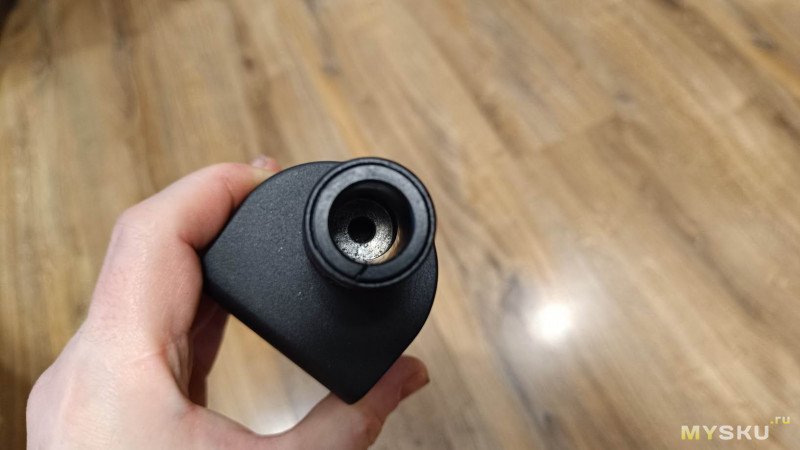 В верхней части зажима имеется специальное глубокое отверстие, куда просто вставляется опорный штырь основания пантографа безо всякого дополнительного закрепления.