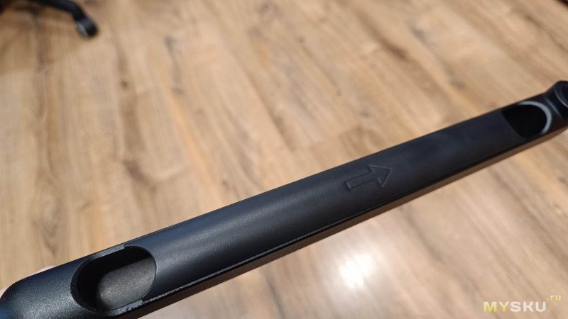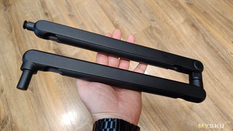 Стойка имеет два колена равной длины, которые соединены между собой бесшумным шарнирным соединением.