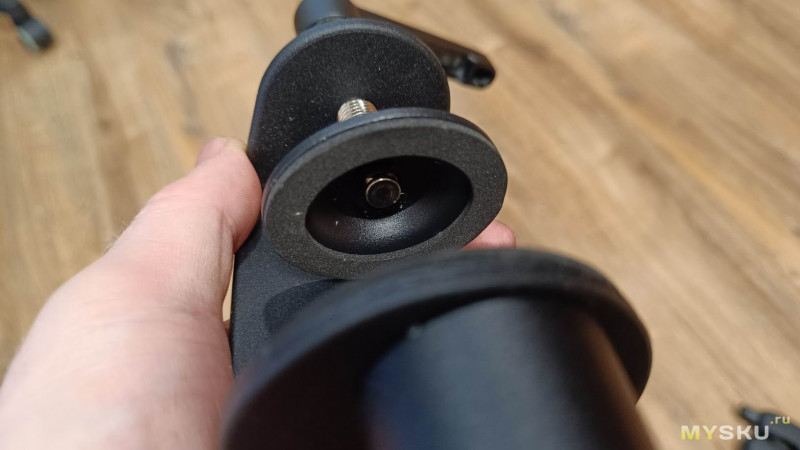 Ну и теперь, о том, что мне особенно понравилось — наличии резьбы 1/4". Такую резьбу используют в фототехнике, а значит на пантограф можно установить не только микрофон, но и фотоаппарат. Это мне очень пригодится, так как частенько приходится что-то снимать для обзоров за компьютерным столом. С такой стойкой теперь можно обойтись без штатива.