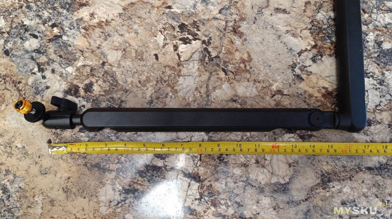 По вертикали верхнее колено поднимает микрофон максимально на 42 см относительно нижнего колена.