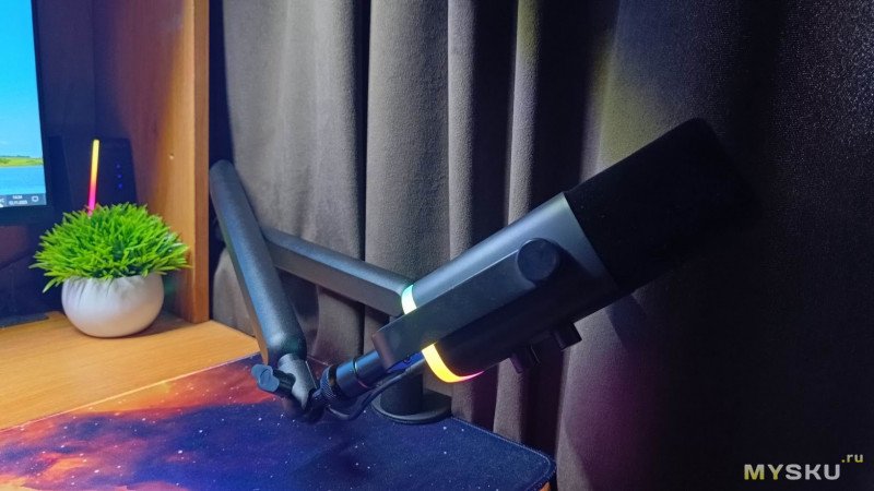Теперь стойка с микрофоном готовы к работе. Для пантографа Fifine BM88 по креплению отлично походит микрофон Fifine AM8. У него резьба расположена прямо на корпусе.