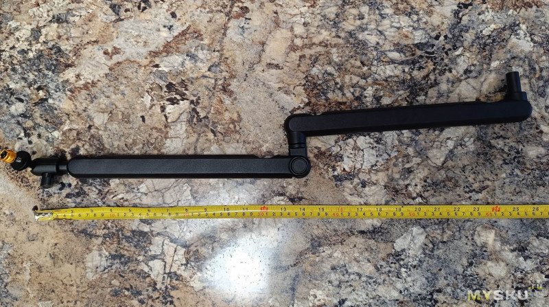 Длина колена составляет 32 см. Максимальная длина вылета при полностью разложенной стойке равна 65 см.