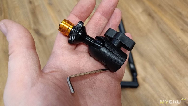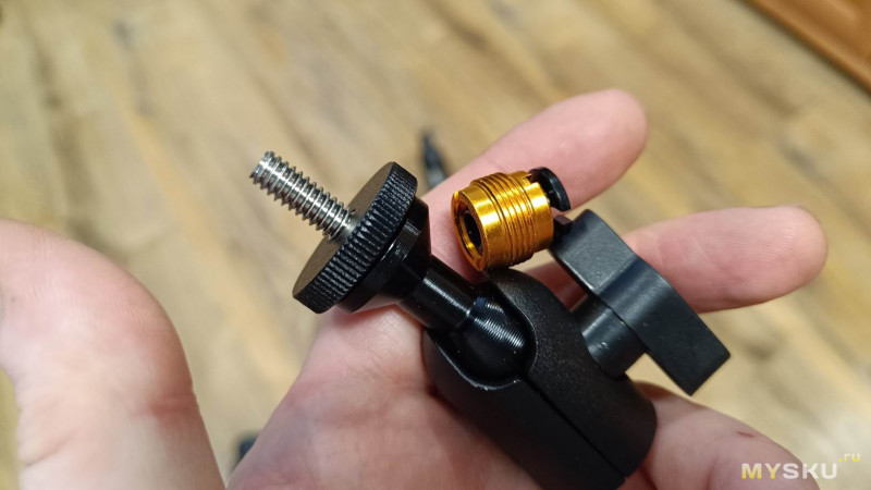 Для установки микрофона на пантограф в комплекте имеется шаровая головка с 3 типоразмерами резьб: 5/8", 3/8" и 1/4". Наличие последней меня порадовало больше всего. Позже поясню — почему.