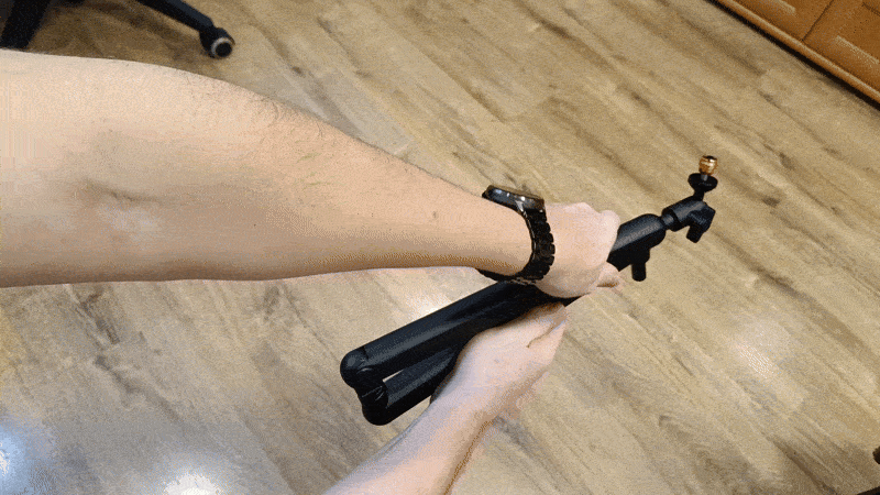 Такое соединение позволяет ещё и верхнему колену вращаться относительно нижнего на 360 градусов. Но здесь вращение уже не такое свободное, нужно прилагать небольшое усилие для поворота колена.