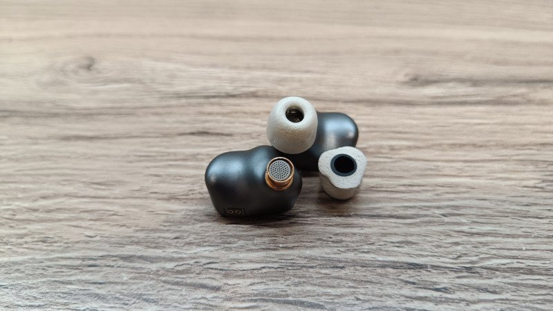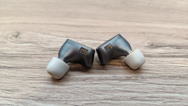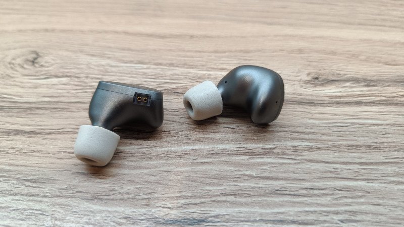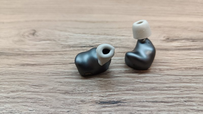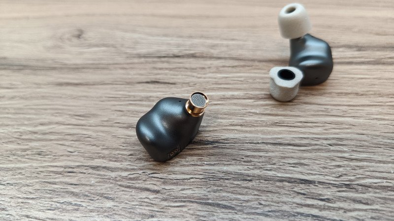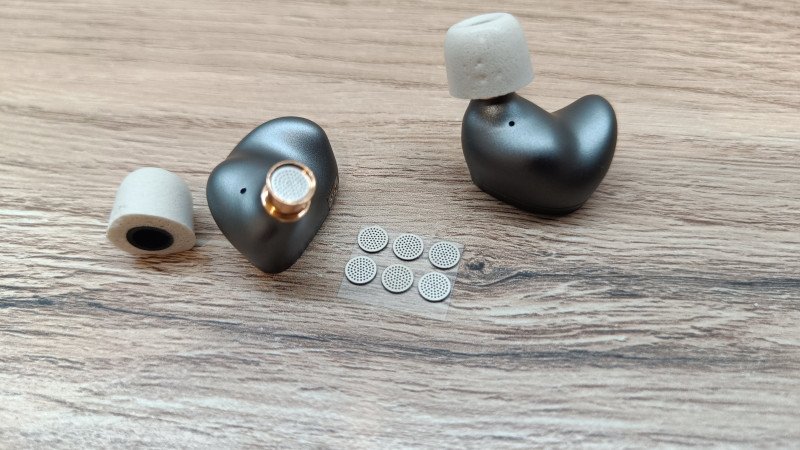 Сами наушники выполнены из металла, чувствуется прохлада при первом прикосновении. Но они довольно легкие, что может говорить об алюминии. Форма анатомическая, в ухе помещается с легкостью и не мешает при использовании. На корпусе можно увидеть компенсационные отверстия с нескольких сторон.