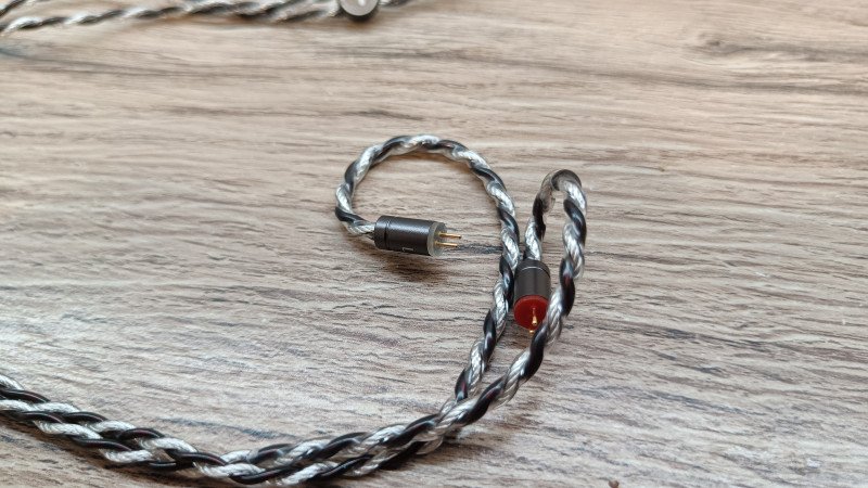 Кабель витой из 4 отдельных проводов отличающихся цветом. Очень мягкий и на морозе не дубеет. На конце штекер с металлической юбкой. Есть защитный кембрик. В констурукции провода используются медные проводники на 28 жил сечением 0,06 мм и посеребренная медь на 54 жилы и сечением 0,05 мм.