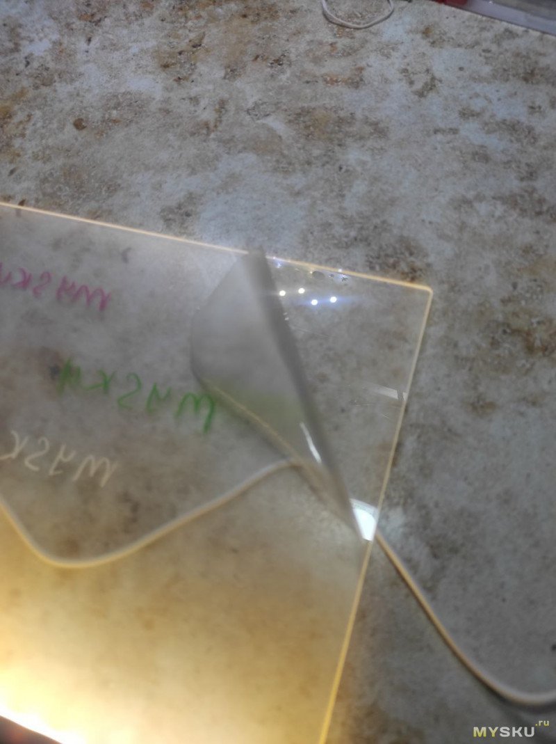 Как убрать надпись? Я просто смыл ее водой под краном. Можно стереть мокрой салфеткой или тряпкой. Скорее всего поверхность оргстекла легко царапается и не стоит тереть ее сухой тряпкой.