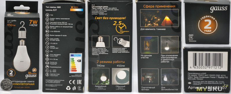 Итог: По мне неплохая лампа с возможностью автономной работы. Для вылазок на природу пешком крупновата и тяжеловата (проще взять налобный фонарь), а для кемпинга на автомобиле и аварийный вариант для квартиры пойдет. За 384 рубля (я покупал локально) свет отличный, хоть и не супер яркий. Поделки FLARX рядом не стояли. Один минус нашел — непонятно когда аккумулятор заряжён, проще просто отставлять работать в люстре. Традиция: