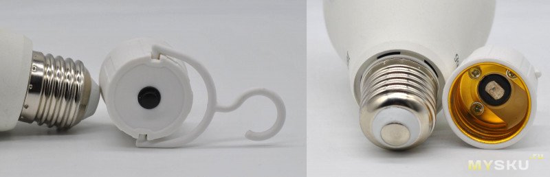 Отдельно идет пластиковый патрон с кнопкой и крючком для подвешивания. Патрон выполнен слабенько, тонкий металл внутри, хлипкий пластик. Но кнопка с четкой фиксацией.