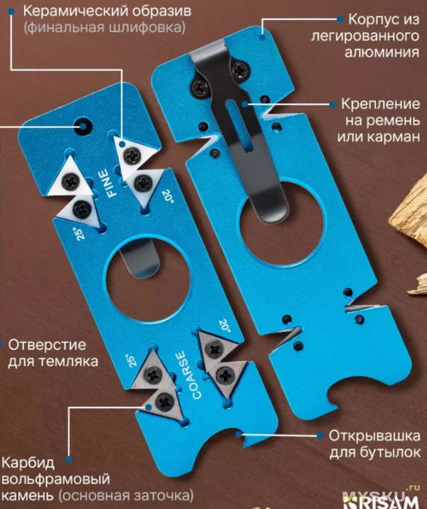 Если же идет сильное замятие РК или сильное выкрашивание кромки, то о какой правке может идти речь – переточка. Про фарфоровые чашечки, водные камни, большие мусаты – это все конечно интересно рассуждать сидя дома. Но мы же о полевых и походных условиях говорим.Я немного отвлекся. Итак, герой нашего повествования компактная, походная точилка ЕРМАК