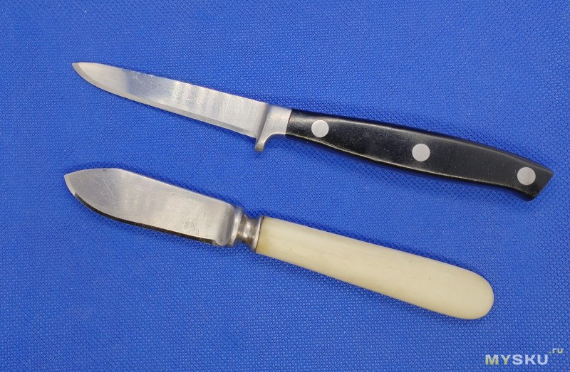 Сейчас ножи, какая нибудь трамонтина в галамарте, копейки стоят! 100-150 рублей. По крайней мере небольшой нож с клинком 9-10см я за такие деньги покупал. И они изначально режут лучше советских кухонных, ну и подточить можно. Зачем этими пиками пользоваться ))