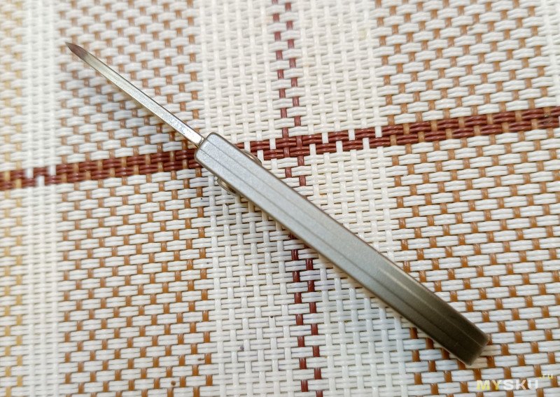 Рукояточка выглядит титановой (не проверял) — меня вес в семь грамм вполне устроил.