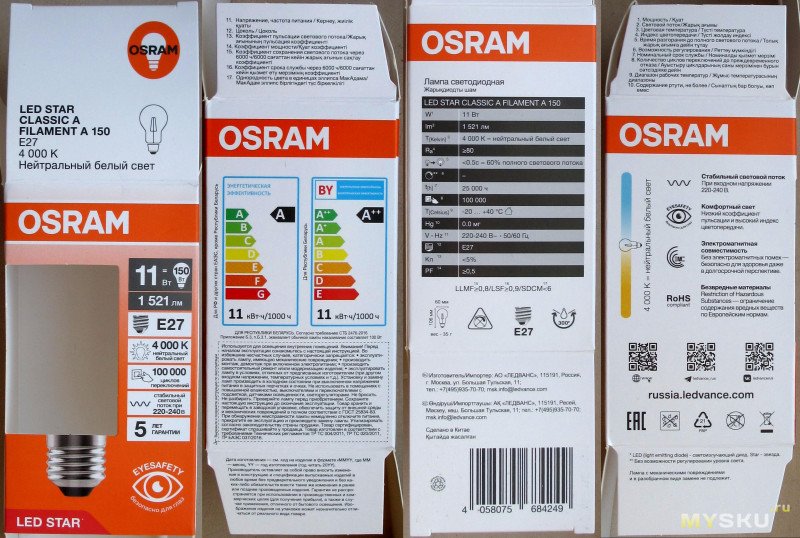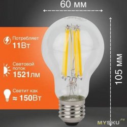Лампы стандартного размера, А60 длиной 105мм, кстати на них достаточно честно указано — угол 300градусов, а вовсе не 360, как любят рассказывать некоторые.