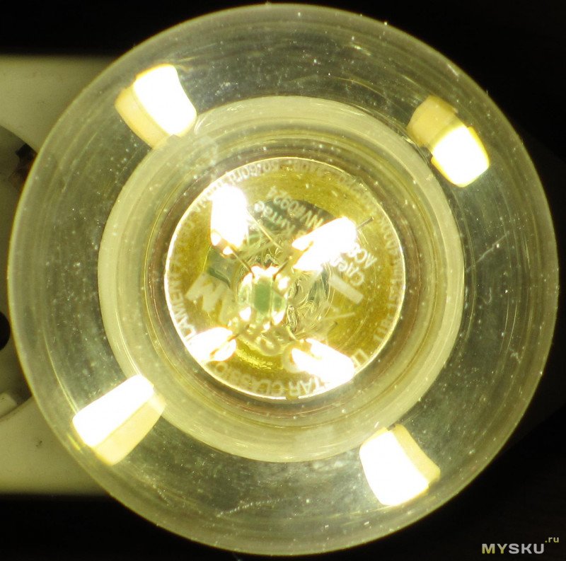Из минусов стоят раза в 2 дороже обычных ламп и имеют специфическую диаграмму направленности — вдоль оси светят слабо, в чем родственны типичным конструктивам клл, как с U-образными, так и спиральными трубками, что в данной люстре полезно. Условно — драйвер линейный, хотя в цоколь E27 вполне можно засунуть и импульсный, но в месте использования вполне стабильное напряжение 225-230В, так что на это пофиг.