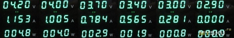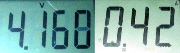 Конечное напряжение заряда 4.16В, ток в начале ~0.4А: