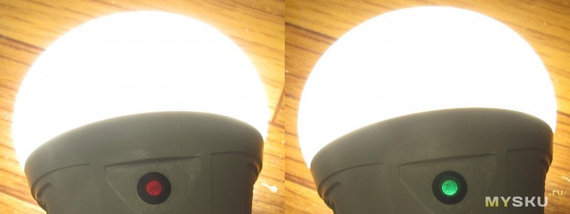 Сбоку виден индикатор заряда — горит красным в процессе и зеленым после окончания (или при отсутствии батарей).