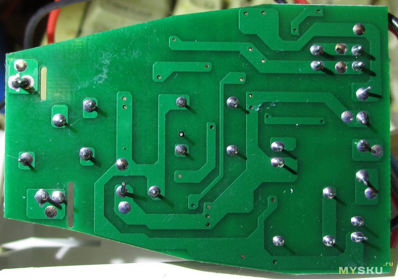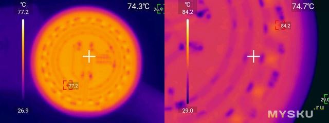Тепловой режим от сети ~85C на диодах при 25C воздухе. Неплохо, учитывая что корпус цельно-пластиковый, и единственная теплоотводящая конструкция — это сама алюминиевая плата с диодами, но увеличенного размера.
