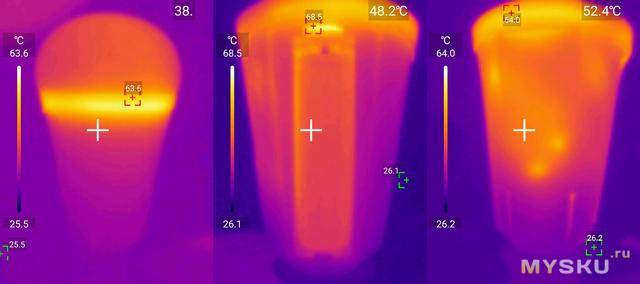 При расположении лампы вертикально вверх аккумуляторы были подогреты до 48C, что не совсем плохо, но уже и не хорошо. Возможно есть смысла снять крышки батарейных отсеков. Третий снимок корпуса со стороны платы: