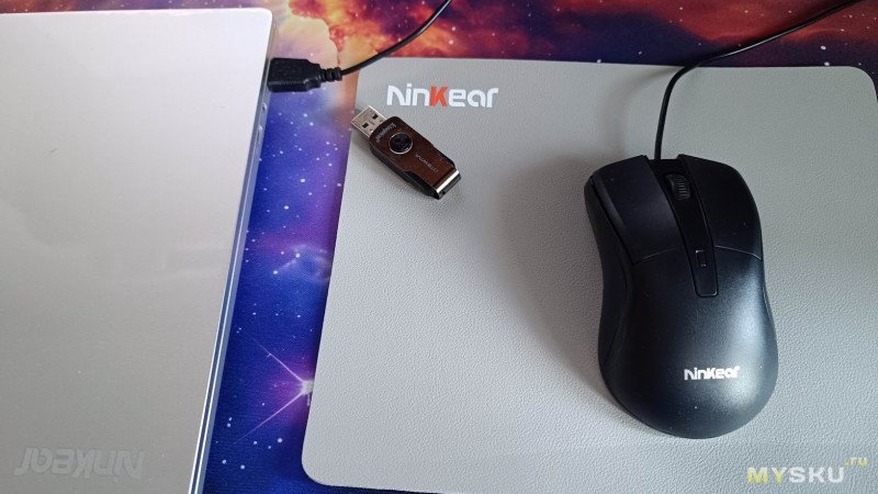В маленькой коробке производитель традиционно кладёт фирменный коврик и простенькую проводную мышку. Мелочь, а приятно.