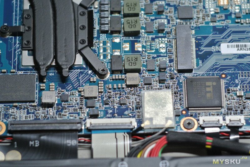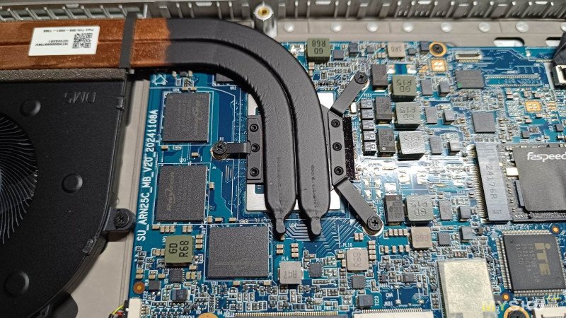 Оперативная память типа LPDDR5X с частотой 6400 МГц имеет ёмкость 16 ГБ. Она реализована 4 отдельными модулями памяти фирмы Ryson. Один из модулей расположен под тепловыми трубками, что наверное не очень хорошо в плане нагрева.