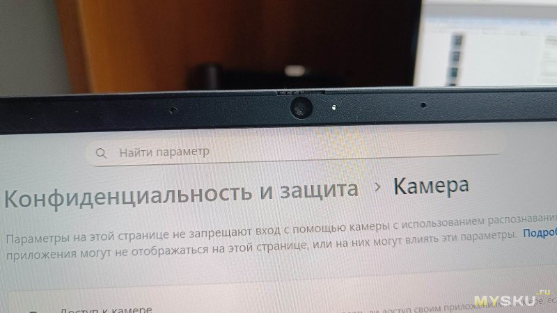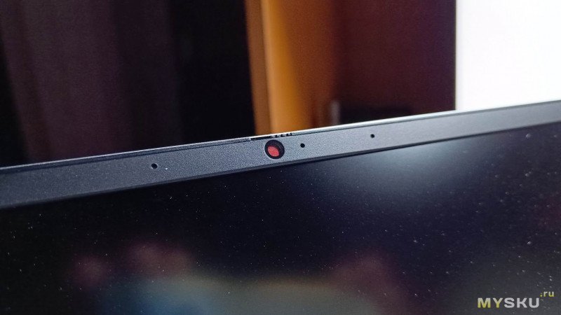 В центре верхней рамки установлена мегапиксельная веб-камера. Она имеет физическую шторку. При её закрытии внутри объектива появляется красный флажок. А в тот момент, когда она задействована, справа горит белый светодиод — параноики могут спать спокойно.