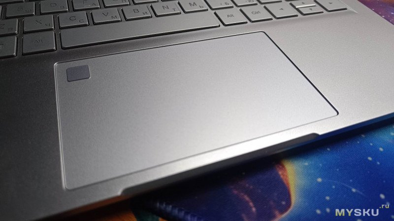 Тачпад довольно большой, что удобно для навигации. Он также слегка утоплен в корпус. Покрытие заметно более гладкое, чем у корпуса, что обеспечивает хорошее скольжение пальца.
