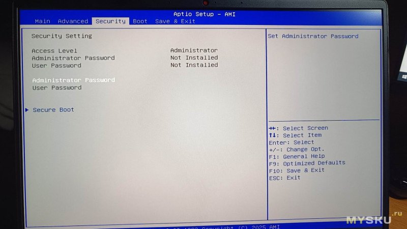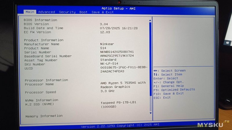 Ноутбук работает под управлением BIOS от компании American Megatrends. Загрузка Network, а также UEFI присутствует.