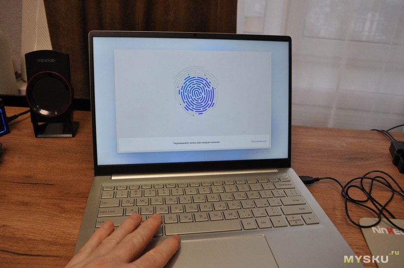 В левом верхнем углу тачпада расположен сенсор отпечатка пальца. Его можно использовать вместо пароля для входа в систему. На отклик работает весьма шустро.