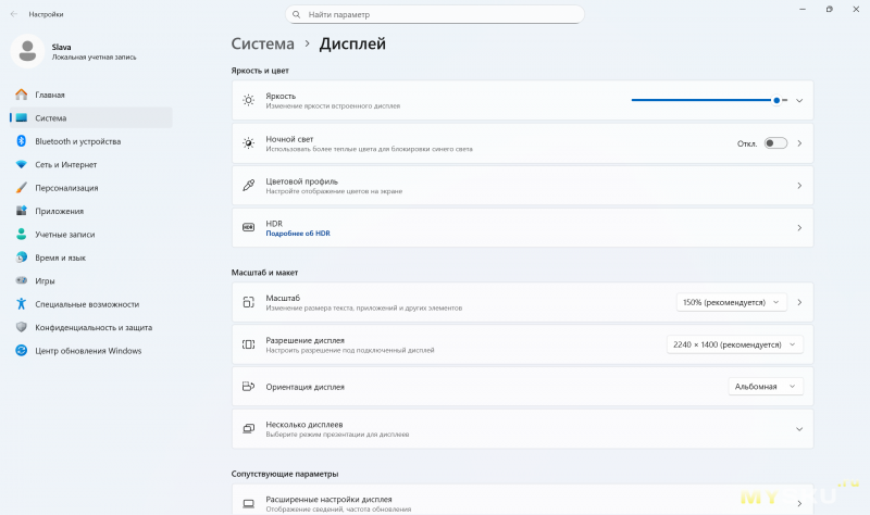 Высокое разрешение и небольшая диагональ по умолчанию дают мелкий шрифт в системе, при плохом зрении придётся применять масштабирование. По умолчанию в операционной системе 150% масштаб, при желании его можно еще увеличить.