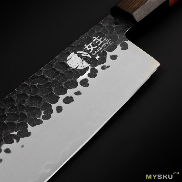 Если честно, то я не в восторге я от Самуры. Ну какая там Japan, зачем это писать на клинке. Я даже не уверен в наличии AUS8. Но нож режет геометрией, а с этим у Самуры все в порядке: толщина клинка, ширина, спуски от обуха, сведение. И термообработка действительно присутствует вне зависимости от используемой стали.Но любопытство сгубило ни одно животное. Вот и я решил посмотреть что это за бренд Onnaaruji.