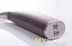 Немного про иероглифы т.к. на коробке, и в торце рукоятке стоят именно они, а на клинке надпись — Onnaaruji (Оннааруджи) 女主 — переводится как «Хозяйка». Но это скорее не слово, а название бренда. На логотипе видимо эта самая «хозяйка» с катаной в руке