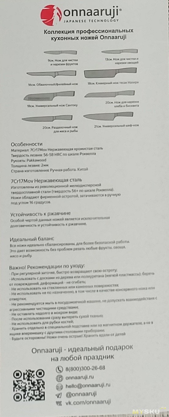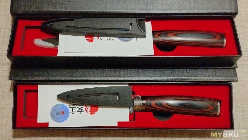 — ценовой диапазон наравне с Самурой, например по бюджетным ножам серии Харакири. Но Самура бренд раскрученный, а в таком случае у ножей Onnaaruji должны быть какие-то фишки, бонусики и т.д. Еще не купив ножи я был уже настроен негативно. Единственно, что двигало мной – любопытство.