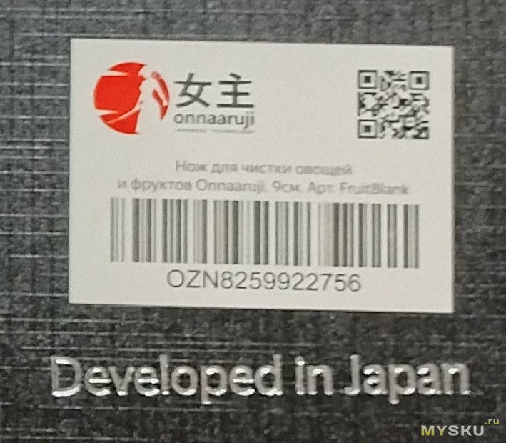 — название бренда, труднопроизносимое и непонятное — нож Onnaaruji. Это как имя финского Деда Мороза — Joulupukki (Йоулупукки). Труднопроизносимое, прикольное, а вот перевод банален: «козел рождественский». Ну, к иероглифам еще вернемся;
