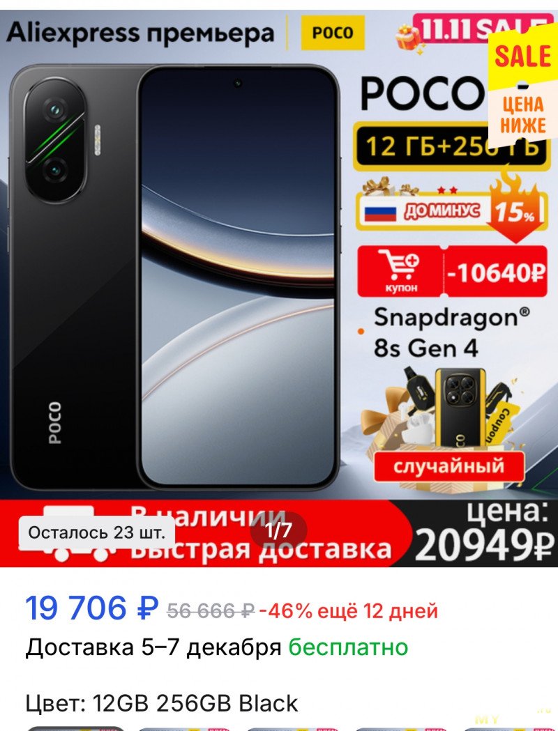 Кстати с купоном Росо F7 12 x 256 выходит менее 20тыр.
