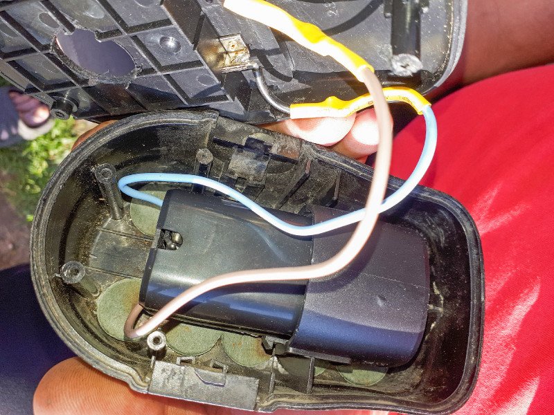 В корпусе просверлил отверстие напротив гнезда зарядки и собрал корпус.